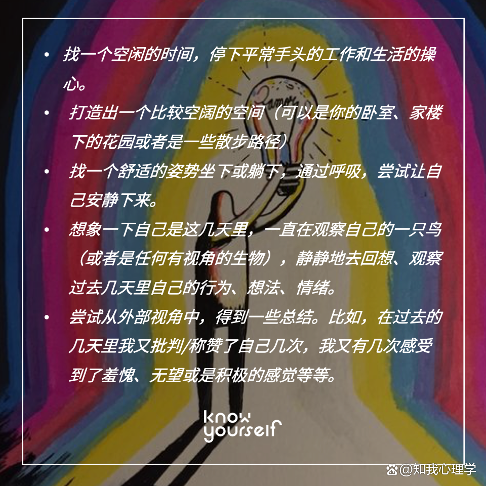 听起来有些玄,我们为大家准备了一个「练习观察性自我」的实操指南(Meyet, 2021),建议长按图片保存哦。