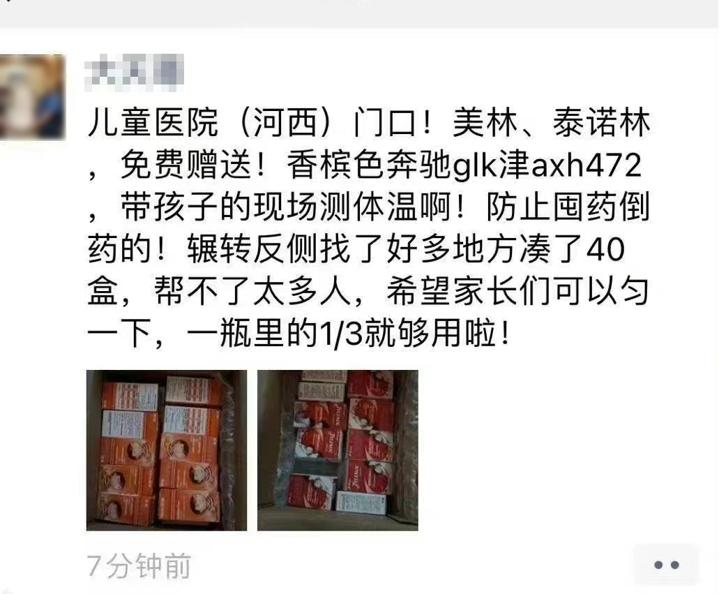 之后,他在医院门口免费送退烧药,为了避免有人囤药倒卖。领药的人必须当场发给孩子测量体温的视频,证明家里的确有孩子发烧。