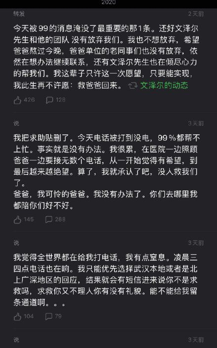 她的父亲突发重病,可医院又没有空余床位,她便发帖求助网友。