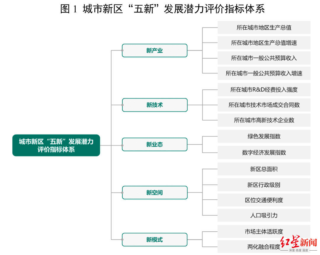 赛迪研究院在榜单解读中介绍,赛迪顾问城市经济研究中心依托城市新区数据库,结合五大发展理念及高质量发展的总体要求,从新产业、新技术、新业态、新空间、新模式五个维度构建了“五新”发展潜力指标评价体系,对省级及以下新区进行了评估筛选,推出“城市新区发展潜力百强(2022)”。