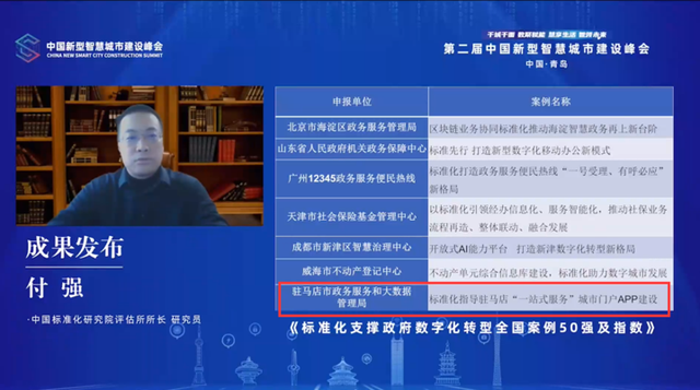 12月21日,第二届中国新型智慧城市建设峰会举行。中国标准化研究院发布国家级重要成果《标准化支撑政府数字化转型评估指数及全国典型实践50强案例》,由驻马店市政务服务和大数据管理局申报的驻马店“一站式服务”城市门户APP——“咱的驻马店”入选标准化支撑政府数字化转型典型案例50强。