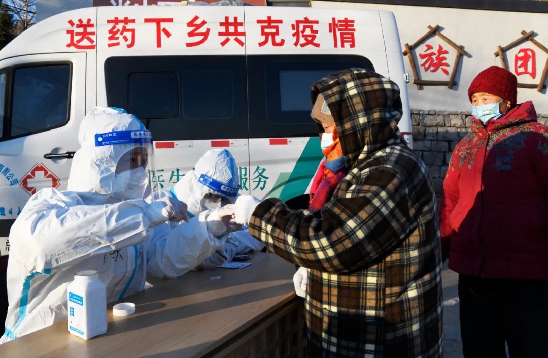 “这个药不能吃多了,按照要求吃,吃完药多喝水,如果一直不退烧还是要及时就医。”志愿者耐心细致地叮嘱着前来领取药品的村民。