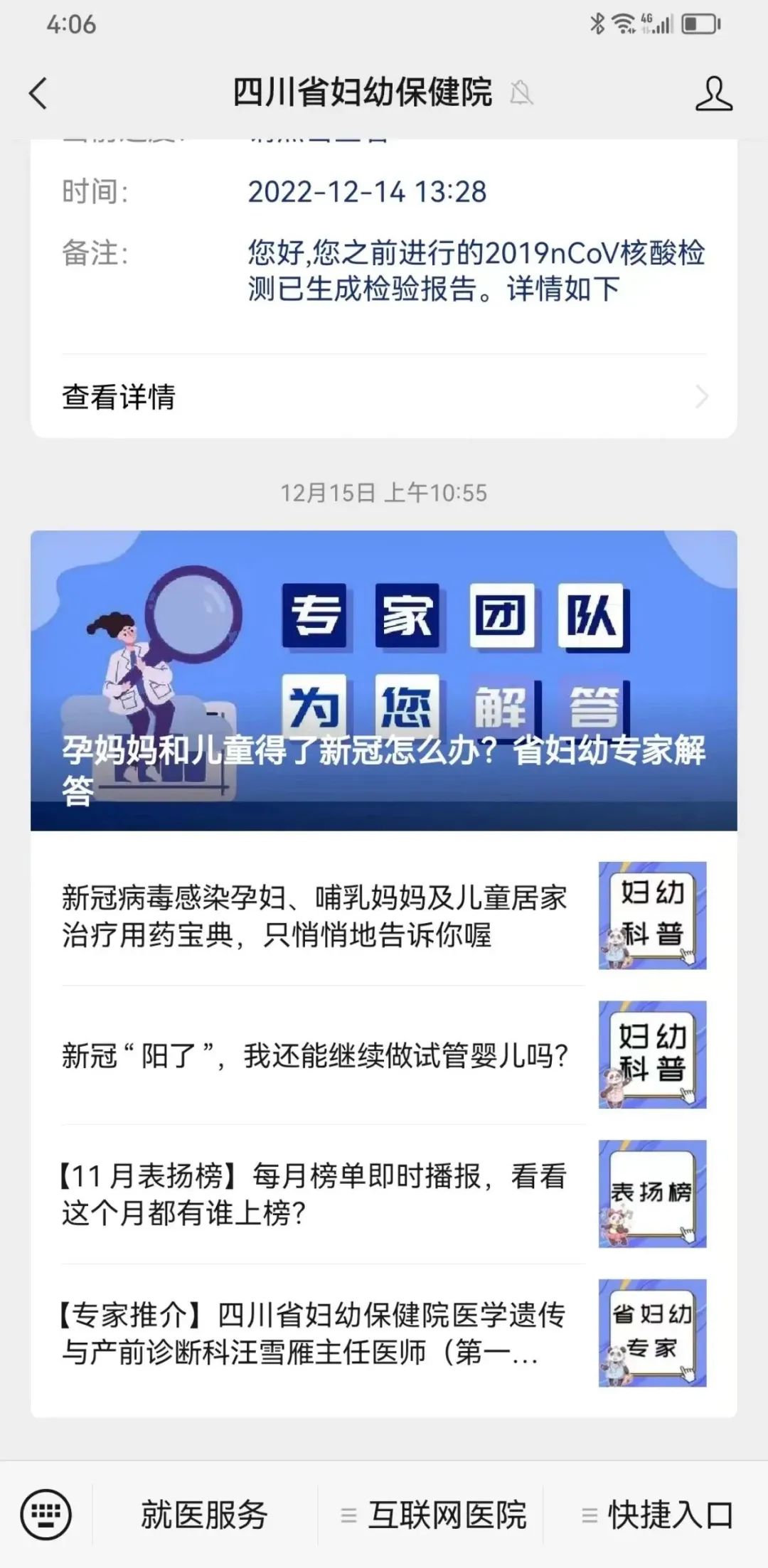 12月24日起可通过“四川省妇幼保健院”微信公众号预约挂号。