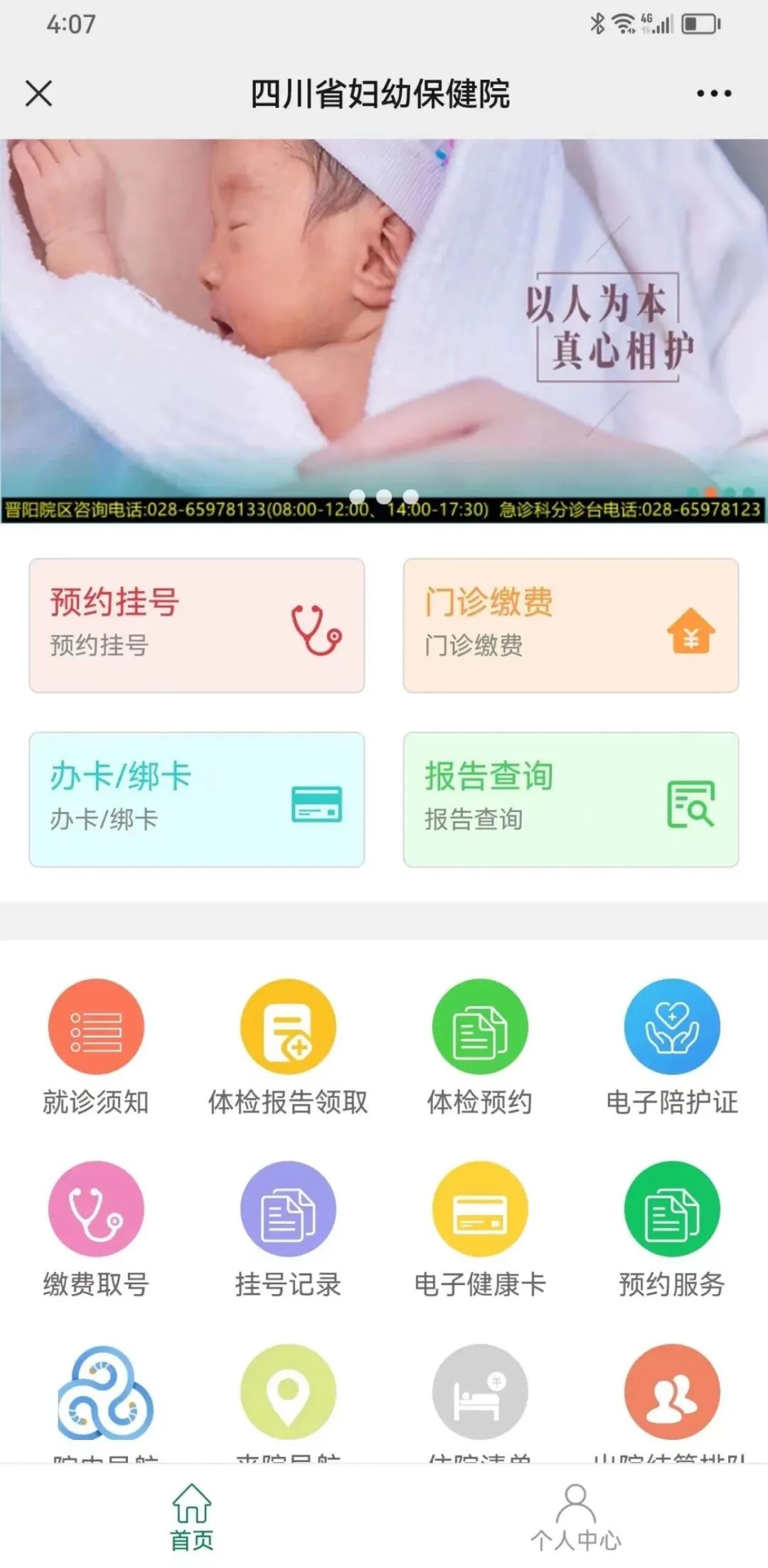 ✅(1)关注“四川省妇幼保健院”官微,扫描下方二维码。