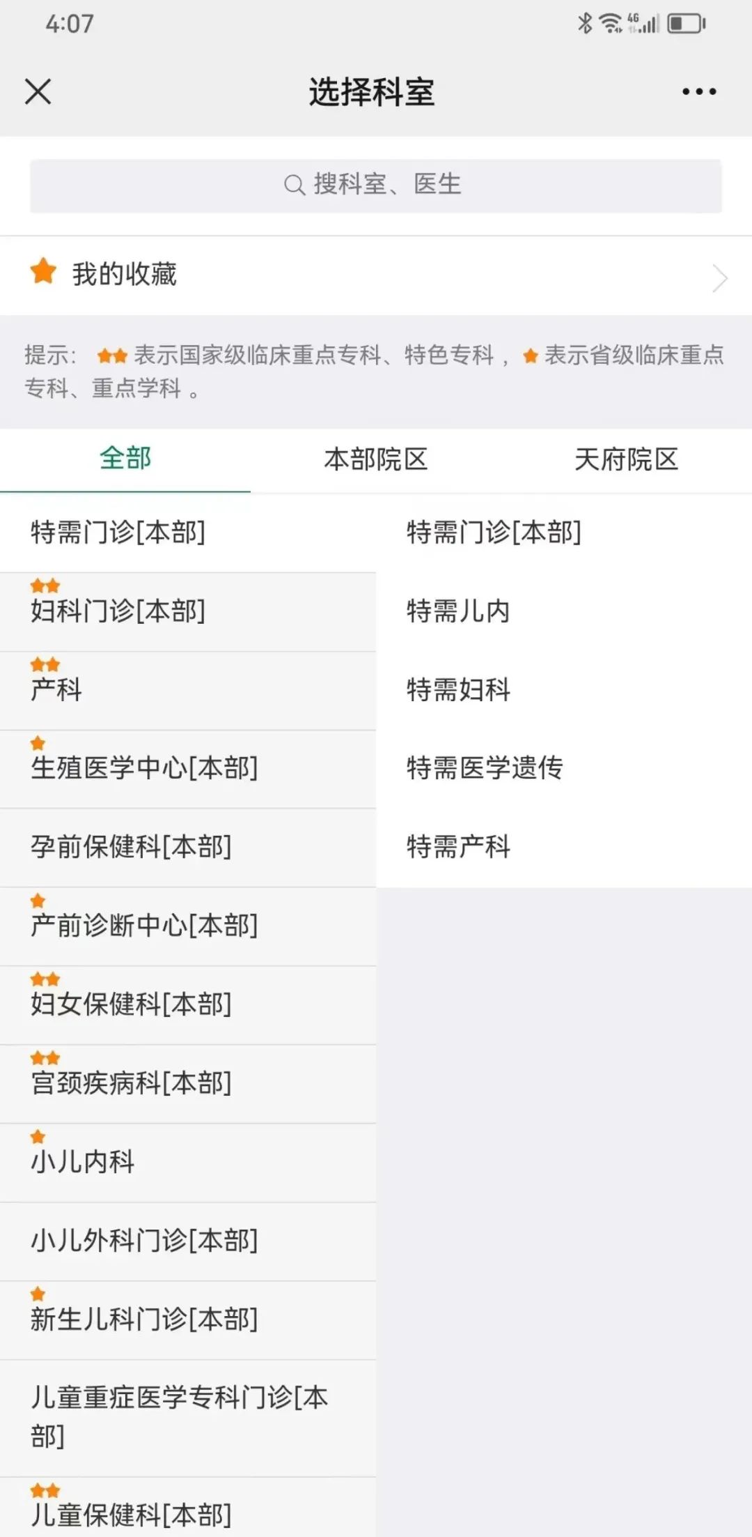 ✅(4)点击“天府院区”选择科室即可