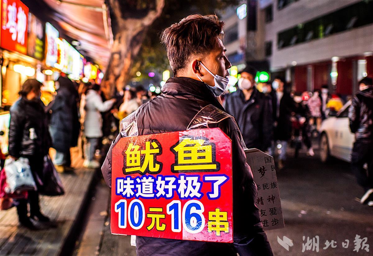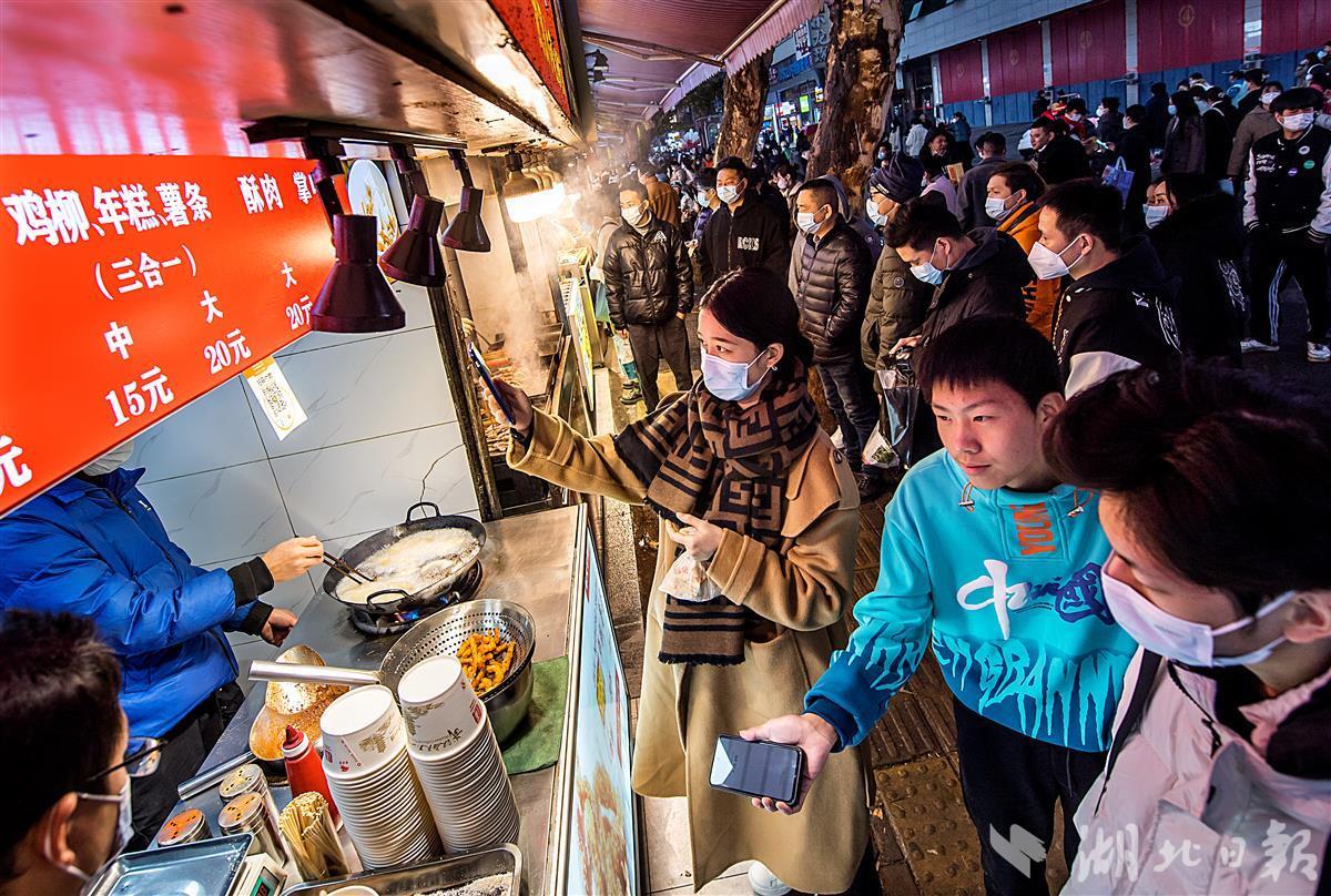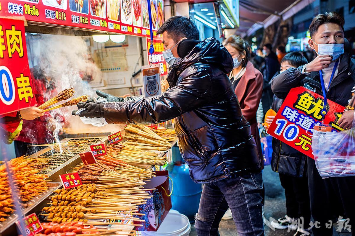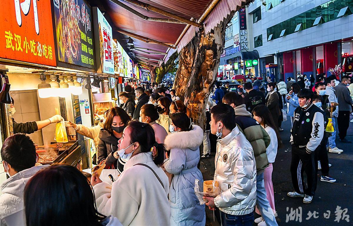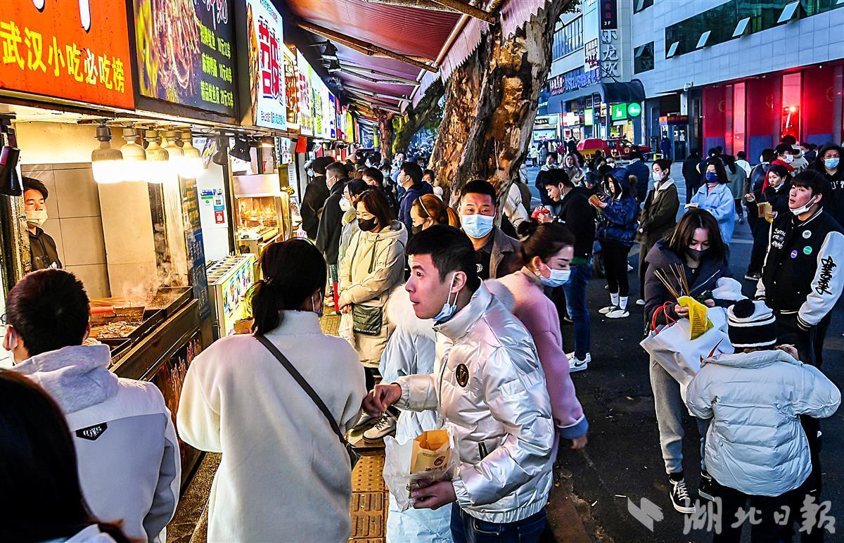 12月22日18时许,武汉的夜空被大街小巷的“夜经济”点亮,升起浓浓的烟火气。