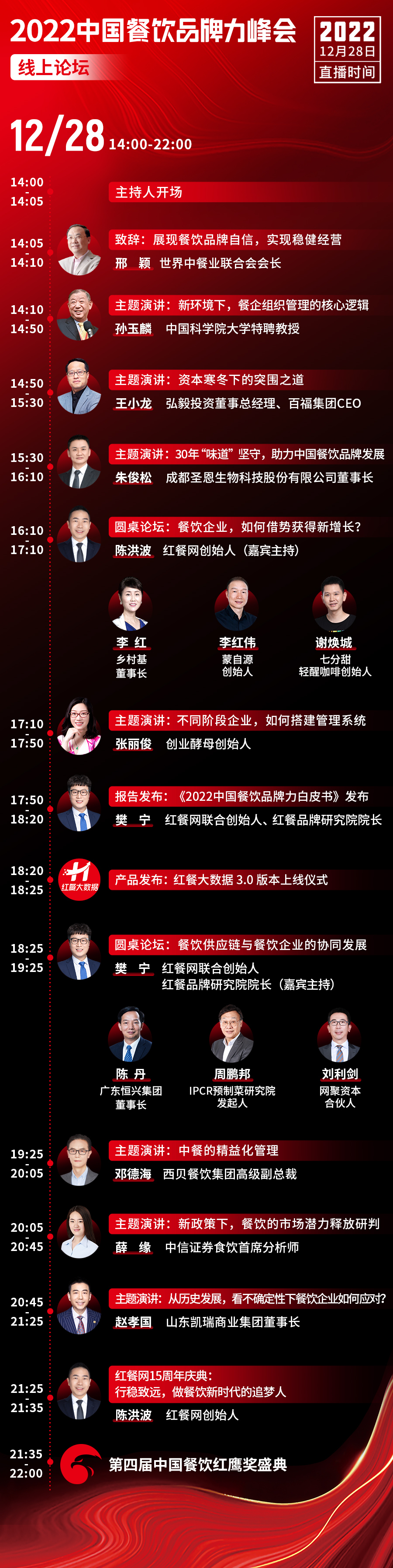 我们衷心期待能与大家相约在2022中国餐饮品牌力峰会线上论坛,共探新时代中国餐饮品牌创新之路!