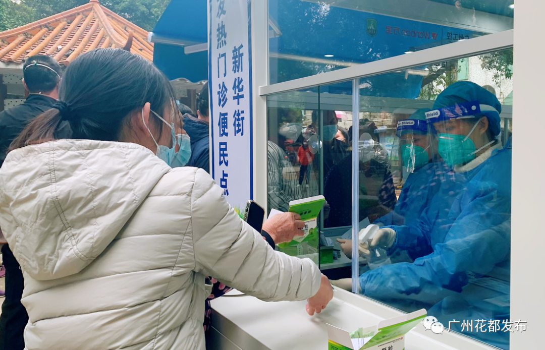 近日,广州花都区新华街有些居民发现,家附近的核酸采样屋成为了发热门诊便民点,最快5分钟便可完成看病、收费、发药全过程。