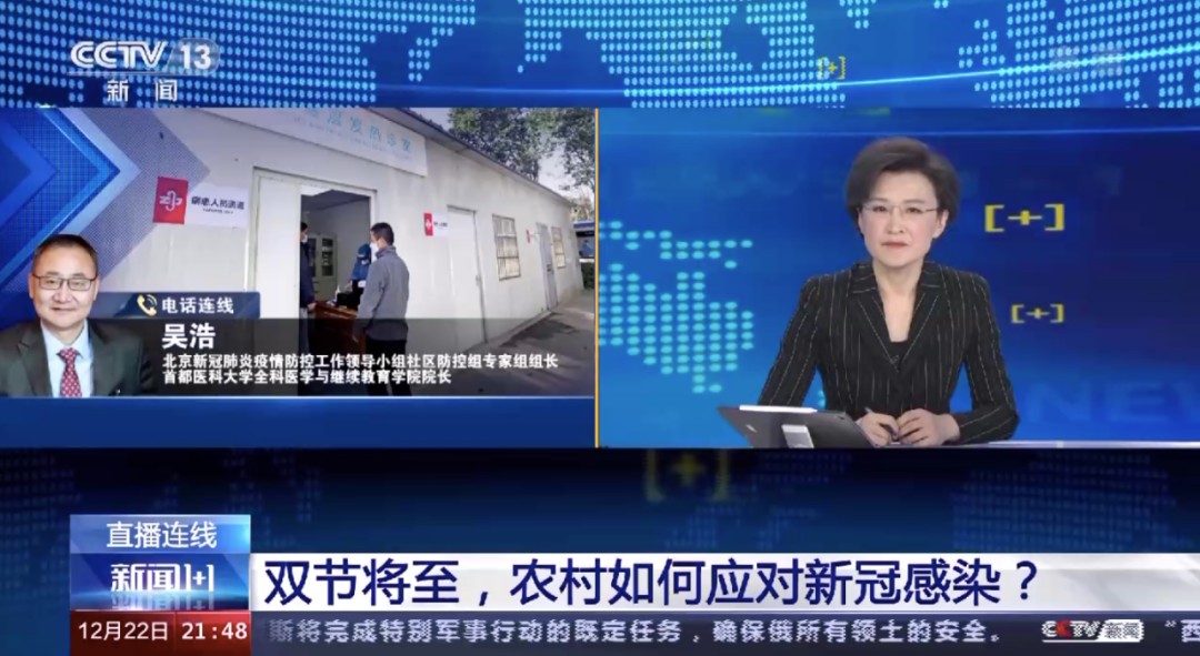 董倩:在一周以前,国家相关部门连续发了两个跟农村疫情防控相关的文件,文件里面把在农村地区从县级医院到乡镇卫生院,再到村诊所都应当做什么,做了一个非常具体的要求,并且在12月底之前要完成。那么接下去我们就连线一位专家,北京新冠肺炎疫情防控工作领导小组社区防控组专家组组长、首都医科大学全科医学与继续教育学院的吴浩院长。吴院长,刚才我们一直在强调,农村跟城市相比的话,医疗资源是相对薄弱的,那么在这样的有可能到来的感染高峰的时候,农村这个时候面临最大挑战是什么?