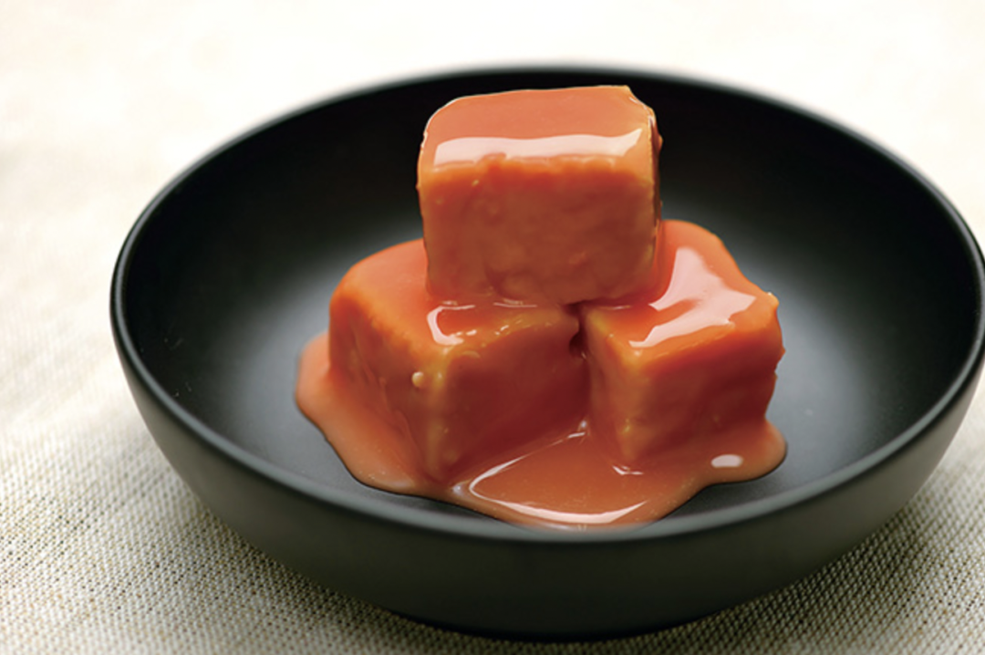作为贵族点心的“豆腐糕”,和腐乳的最大不同是不咸,只能靠加入冲绳本地烈酒“泡盛”来杀菌,伴随而来的大量有益菌群被杀死,因此中国人的味觉评判系统里,豆腐糕的发酵程度不够深,空有腐乳的质感,缺乏氨基酸为腐乳带来的,爆炸般的鲜味。