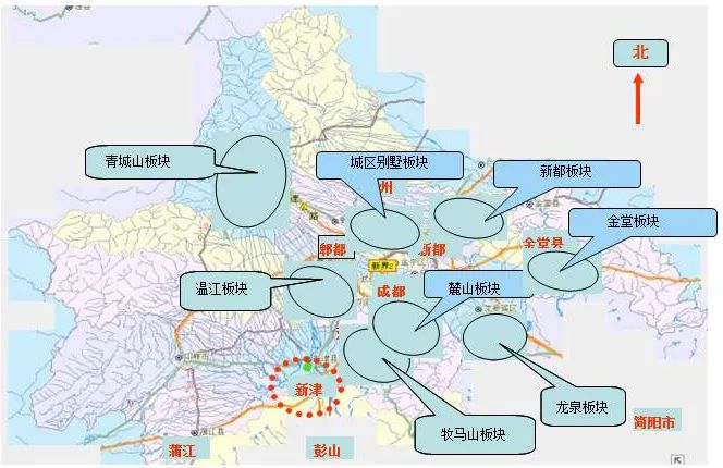 成都别墅板块分布示意图