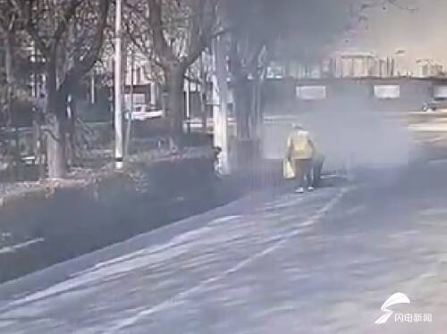 潍坊23路公交驾驶员陈杰提着灭火器赶到起火地点