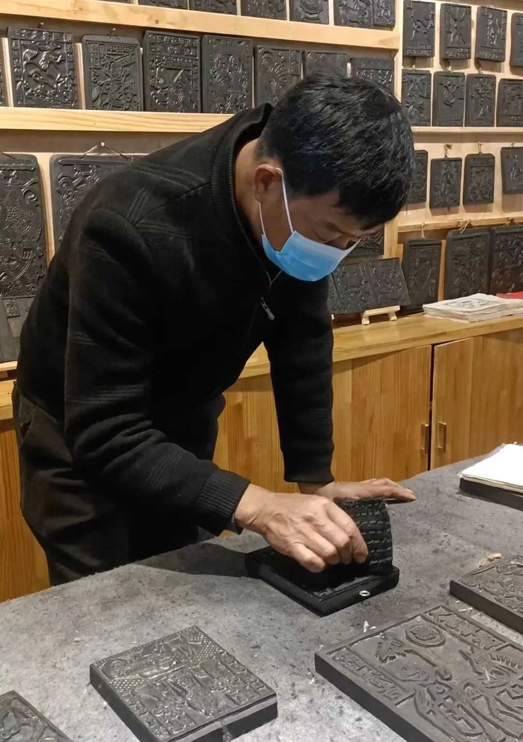 为了解决村里面部分出行不便的人就业问题,张瑞龙还给当地部分村民提供了就业机会,在一定程度上解决了他们的就业问题。“男的就让他来馆内学刻版,女的就是学刺绣。根据他们长项来分工,并给他们支付一定的工钱。现在甲马的形式也在变化,我们将甲马与刺绣、剪纸相融合,通过刺绣把新设计的国潮图案绣在衣服或包上,还通过给现代图案的甲马上色,吸引更多年轻群体动手参与甲马。”张瑞龙说。