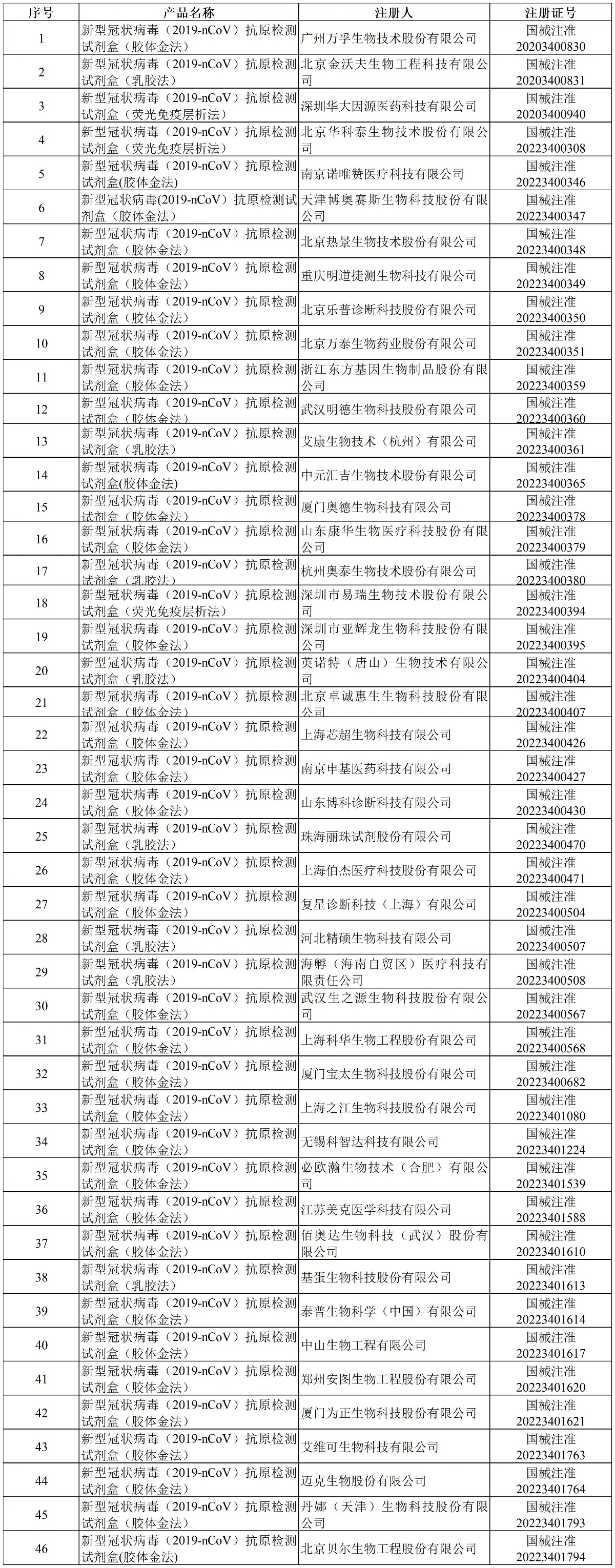 附件:国家药监局已批准的新冠病毒抗原检测试剂