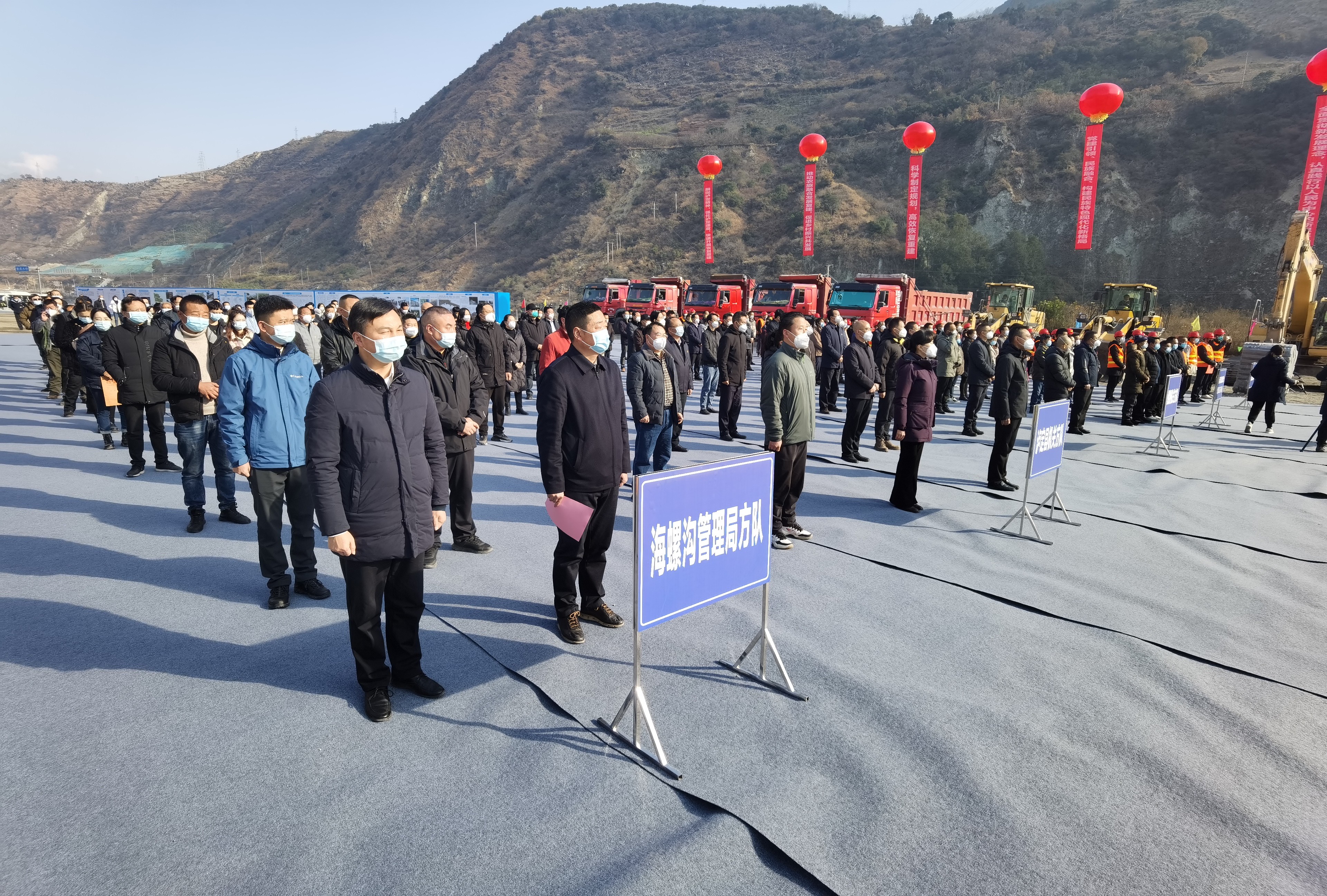 随着施工机具齐鸣,铁锹铲下第一铲土,12月23日,在泸定县德威镇下奎武村集中安置点建设现场,甘孜州“9·5”泸定地震灾后重建项目建设全面启动。