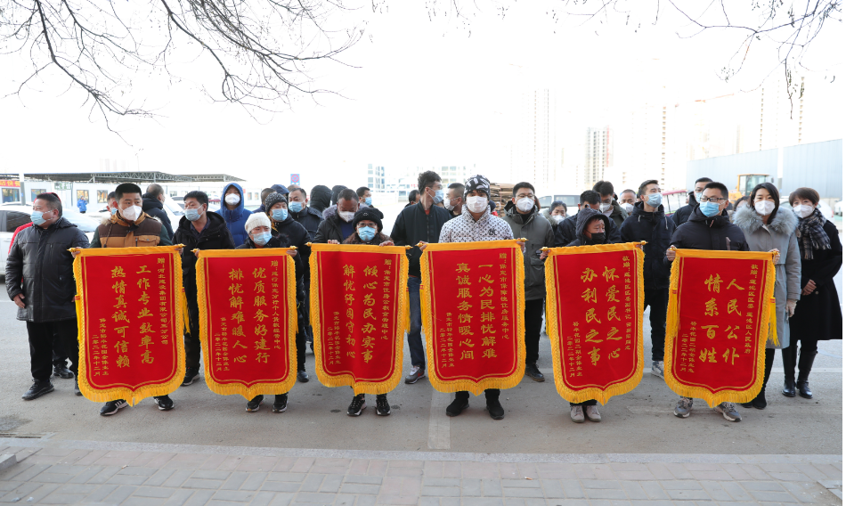 “人民公仆,情系百姓”“怀爱民之心,办利民之事”...金灿灿的大字在红彤彤的锦旗上格外引人注目,裕丰花园二期业主代表将6面锦旗送到保定市莲池区处置秀兰裕丰花园二期领导小组办公室。