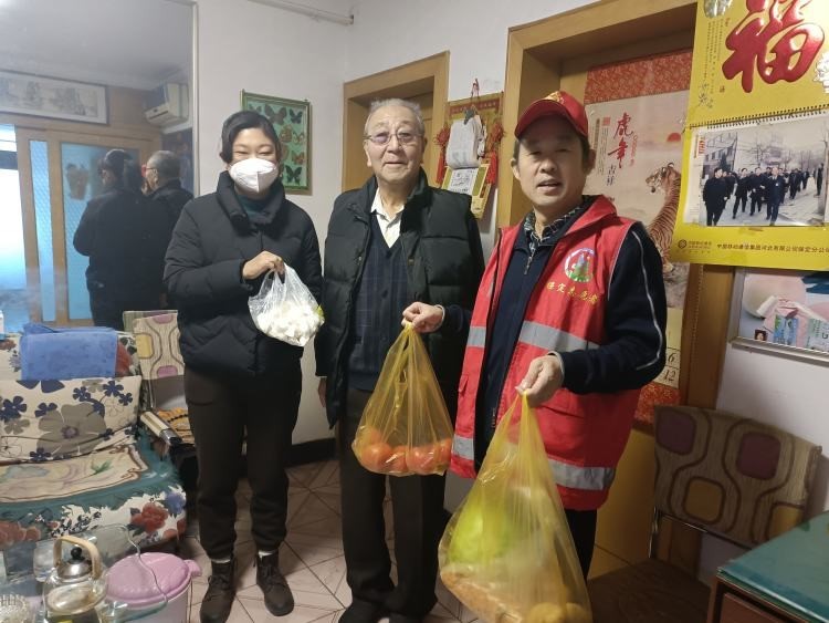 12月21日,铁塔社区工作人员与保定市关爱独居老人志愿者协会的志愿者们坚持“人民至上”理念,走进独居老人家中,为老人送上新鲜蔬菜及爱心水饺。当天上午,志愿者们共慰问了4位独居老人。