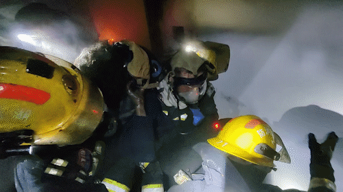 消防员在火场搜寻到婆婆
