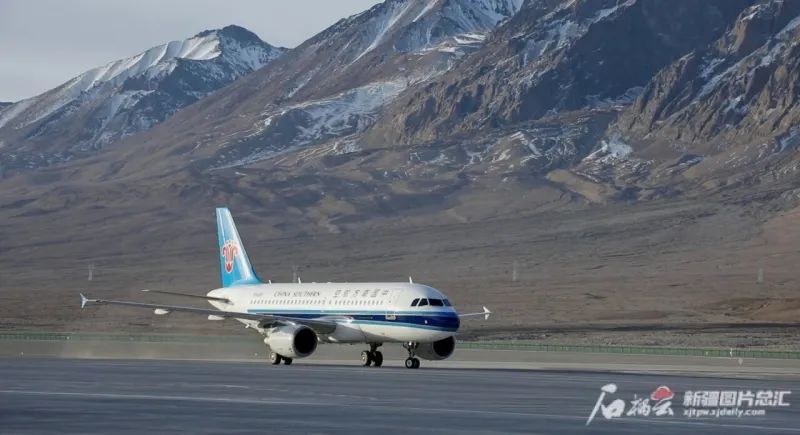 12月23日,塔什库尔干红其拉甫机场,航班稳稳停靠,首航成功。石榴云/新疆日报记者 高旭 摄