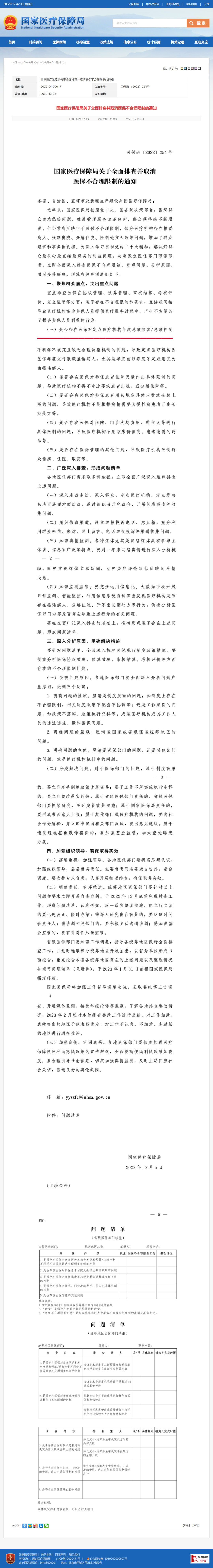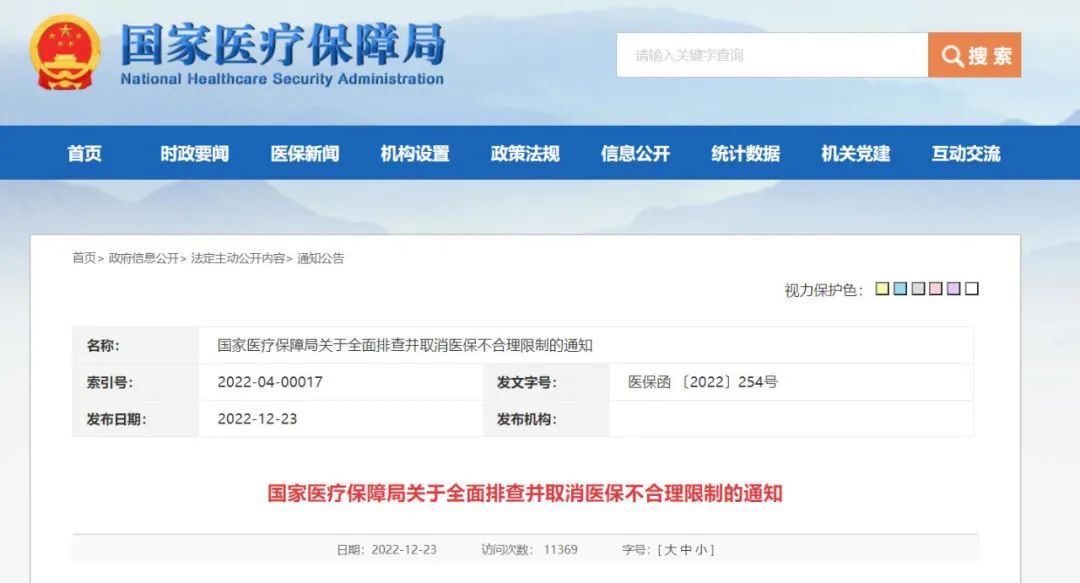 12月23日,国家医疗保障局发布一则关于全面排查并取消医保不合理限制的通知(以下简称《通知》),针对部分地区医疗机构在协议管理、预算管理、审核结算、考核评价、基金监管等方面存在不合理限制和要求,造成推诿拒收参保患者、强制患者中途出院、拒绝为符合条件的慢病患者开“长期处方”等问题,医保部门将开展一次集中排查清理活动。