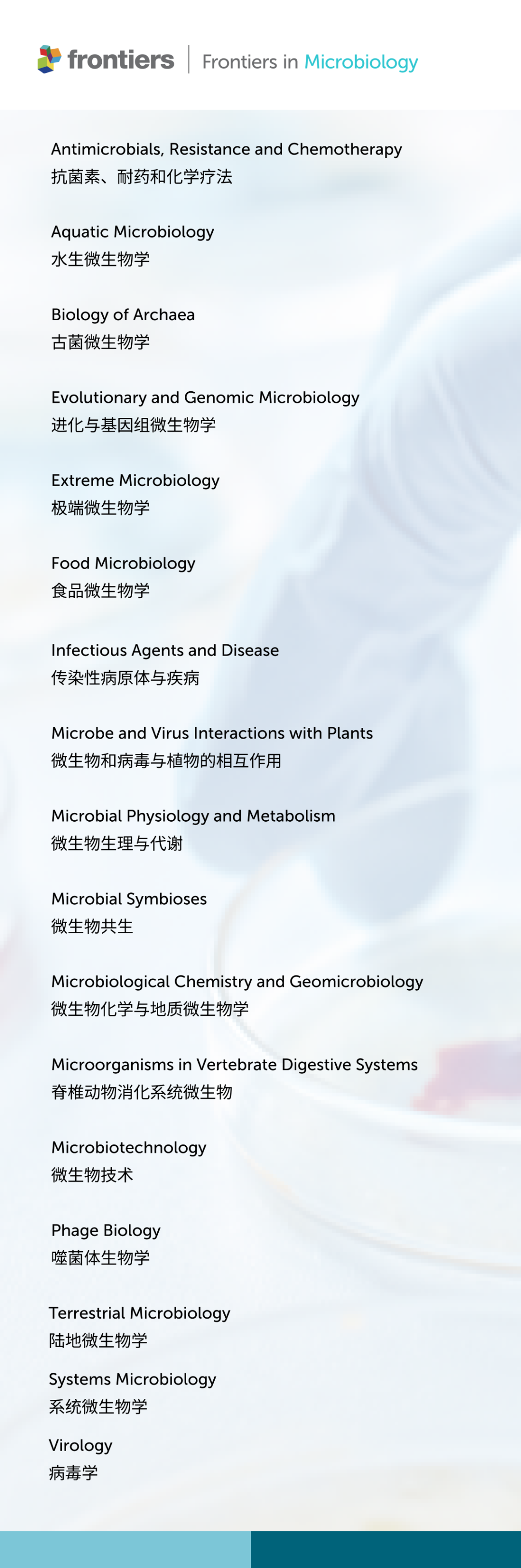 作为 Microbial Symbioses 栏目中国区唯一的一位 Specialty Chief Editor,将协同 Frontiers 管理团队一起做好以下工作: