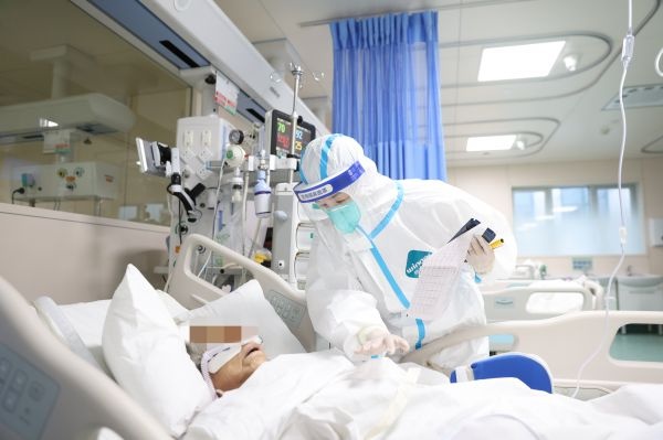“患者呼吸困难,氧饱和不好,赶紧上呼吸机!”12月18日上午,在武汉市中心医院呼吸与危重症医学科监护室内,一位82岁的老人在发热3天后呼吸困难被紧急送入医院救治。