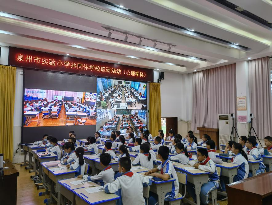 扩大优质教育资源覆盖面,促进教育均衡发展是现代化教育的新需求。为促进“5G+专递课堂”试点工作的进一步开展,助力区域优质教育均衡发展。日前,泉州市实验小学洛江校区与市实小总校及洛江区河市白洋小学共同开设办学共同体心理健康学科“5G+专递课堂”。泉州市实验小学朱倩莹老师和洛江校区陈应琴老师协作教学,展示了一节精彩的心理健康教育双师课堂。泉州市教科所心理健康学科教研员洪慧芳老师、两校的校级领导及心理健康组的老师参与研讨活动。
