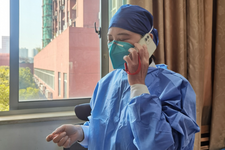 施怡看完上午的门诊,刚刚摘下防护面罩,一个接一个的电话就打了进来,记者注意到其中一个电话是一名科室主任向施怡求助:“我实在腾不出医生来接电话了,怎么办?”这个问题立刻就上传到了医院党组织群,很快就有了答案:发动党员带头。“我们是医生,再加上党员的身份,这个时候没有谁会退却的。”