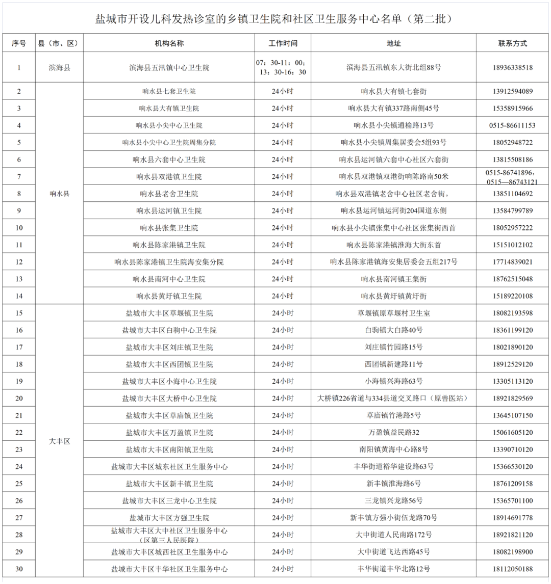 开设儿科发热诊室的乡镇卫生院和社区卫生服务中心名单(第二批)