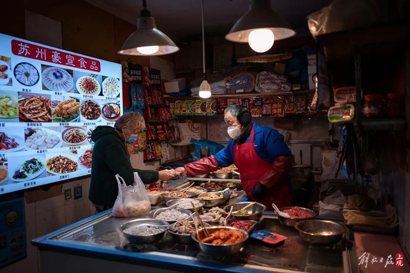 菜场的熟食区永远是懒人的福音。在上钢集贸市场一街之隔,熟食店、小餐饮店一字排开,依菜场而生,生意红火。