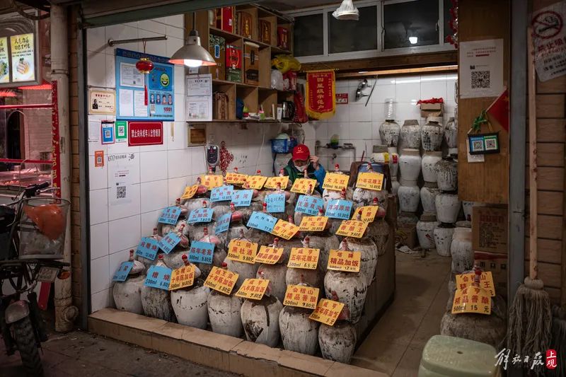 市场里的酒摊品类繁多,散装零拷,风格复古又硬核。