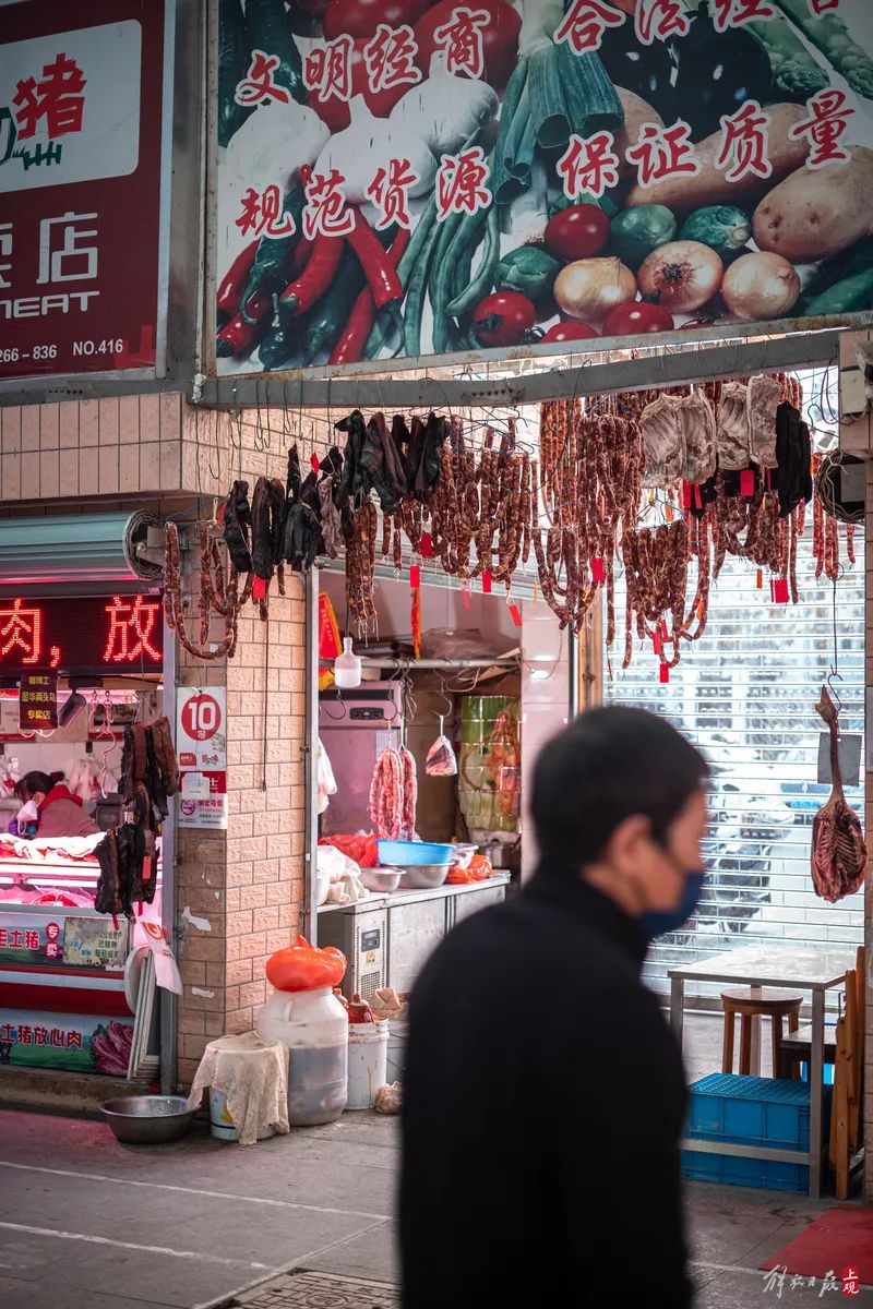 处处高悬着腊肉香肠,菜场开始有年味了。