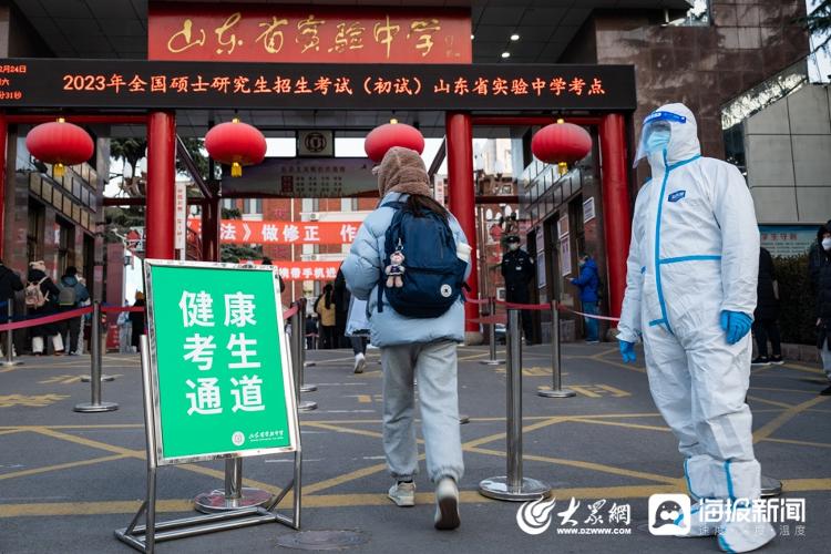 12月24日,2023年全国硕士研究生招生考试开考,据悉,2023年全国考研报考人数为474万。在位于济南的山东省实验中学考点、育英中学考点,考生有序步入考场。记者在考点外看到,考生需根据自身情况在工作人员的引导下经“健康考生通道”或“特殊考生通道”进入考点。