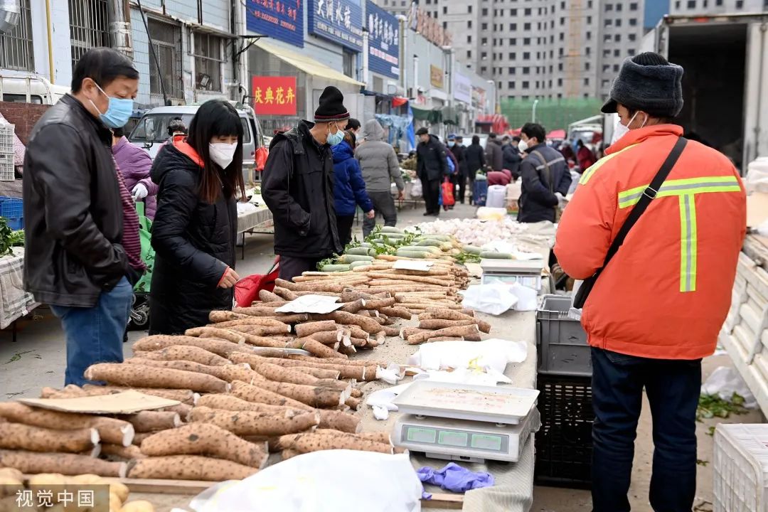 2022年12月20日,青岛,西海岸新区薛家岛大集,市民在选购蔬菜。