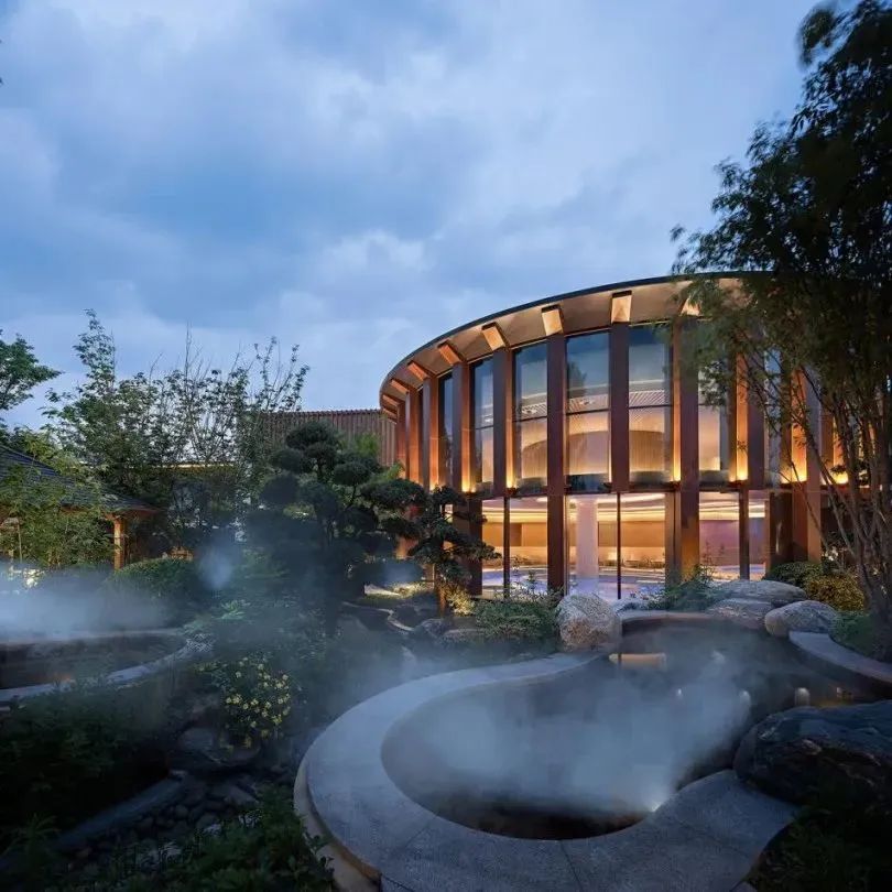 占地3500平方米的氡元素温泉中心由21个室内外泡池组成,温泉含具有康养价值的氡元素,酒店共有66间新亚洲设计风格的客房,其中44间别墅客房拥有独立温泉泡池入户,带来放松身心,感悟自然的绝佳体验,吃喝玩乐住泡汤一站齐活,惬意满满。