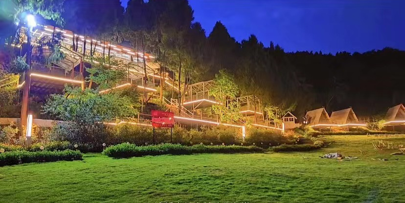 和白天的森系相比,傍晚的露营音乐会,夜间的电音灯光秀,午夜的帐篷电影,更是层出不穷的浪漫体验。云漫半山营地美学中心,可以观看现场乐队表演,来一场户外篝火晚会,看一场露天电影。