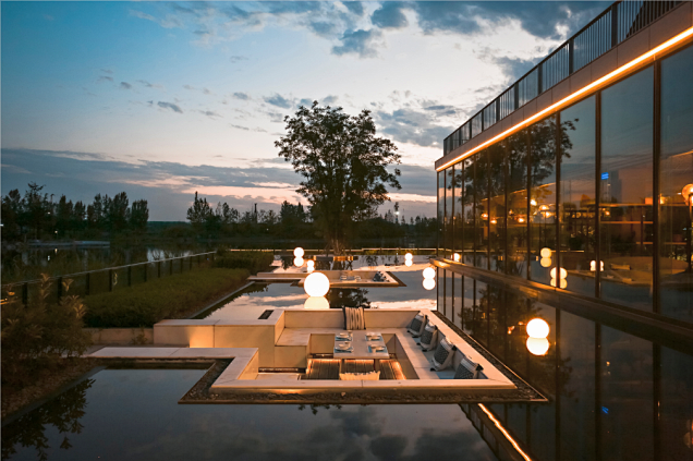 云里小坐海泉湾坐落于美学馆一楼,室内接待面积约500㎡,采用热带雨林装修风格,参差交错,恍然若置身于林中。全景玻璃幕墙,极佳湖景视野,别具一格。室外面积约1000㎡,配有独立的户外餐车及天幕的休闲设备,让身心得以放松。