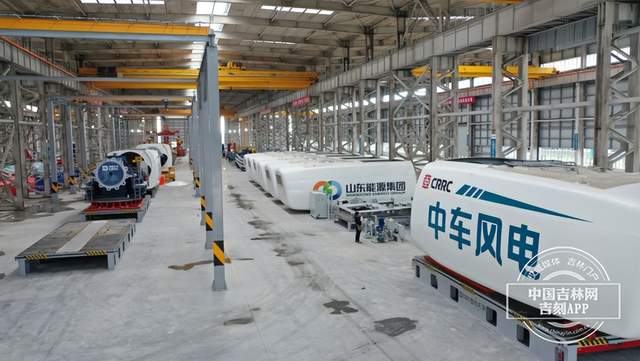 在白城市通榆县三一重能通榆零碳智造风电产业园,运输车辆往返穿梭在风力机叶片车间和整机车间里,施工人员紧张作业,生产场景十分壮观。