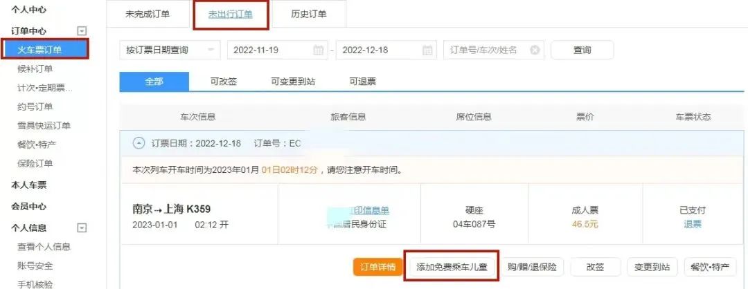 自2023年1月1日起,每一名持票成年人旅客可免费携带一名未满6周岁且不单独占用席位的儿童乘车,超过一名时,超过人数应购买儿童优惠票。