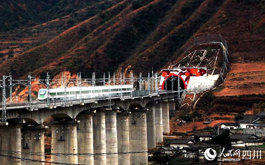 12月23日,一列复兴号动车组安全行驶在小相岭隧道。程蓉轩 摄