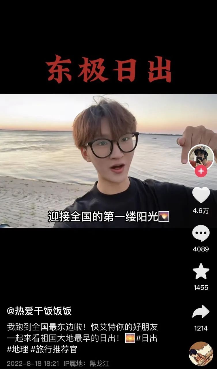 大一暑假,他和同学结伴前往黑龙江省抚远市旅行。太阳升起的那一刻,年跃心里突然生出几分感动——抚远市是中国大陆的最东端,眼前这温暖的金色将是这一天祖国大地上的第一缕阳光。“这种感觉很难形容,就像你真正理解一句古诗后,和千百年前的诗人跨越时空的限制产生共鸣,这种获得感不是简单背下来这句诗可以相比的。”