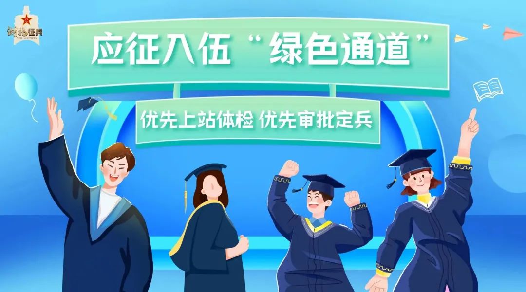 征集对象以大学毕业生为重点,持续畅通大学毕业生应征入伍“绿色通道”,优先上站体检,优先审批定兵。