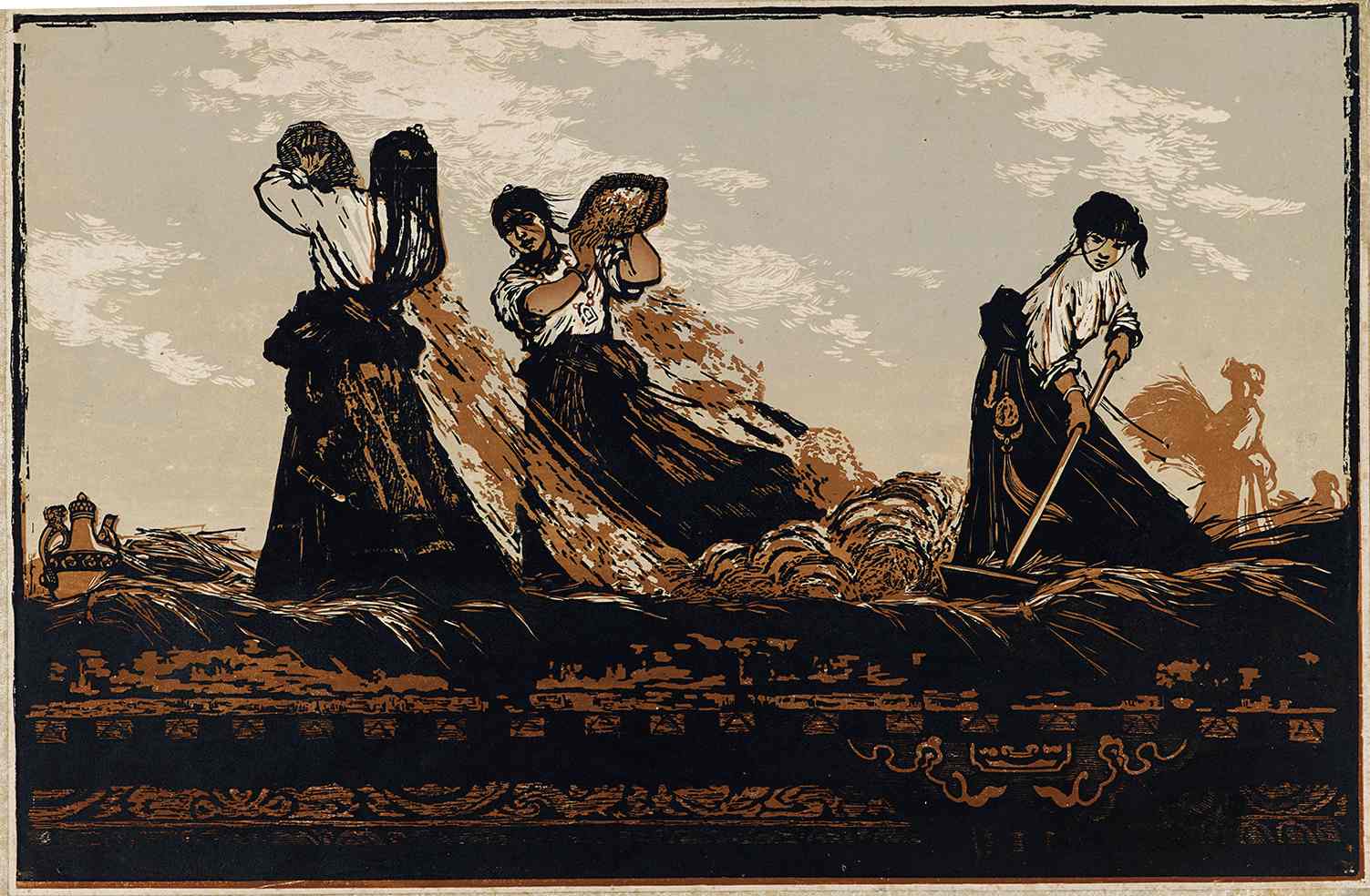 ▲ 扬青稞(版画) 36×55.5厘米 1957年 李焕民