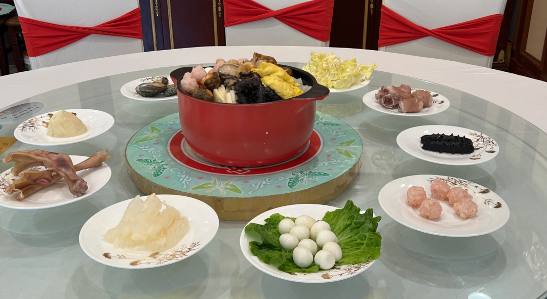 除了传统本地菜,这几年,一些新兴的美食也备受欢迎。走进和悦海鲜姿造餐厅,喜庆的红色广告立牌上,烫金的“年夜饭”三个大字十分醒目。记者从餐厅负责人处了解到,这里的年夜饭预定也十分紧俏。冬季吃火锅原本就是很多人喜爱的饮食形式,再配上装修雅致的包间,新鲜的海鲜产品,一人一锅的小火锅形式,也十分受欢迎。