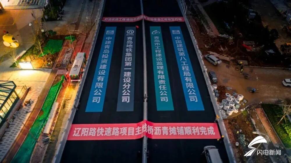 辽阳路快速路自2022年2月10日开工建设,3月21日完成首桩施工,9月7日完成主线桥桩基,11月10日完成主线桥箱梁架设,11月28日完成沥青摊铺,12月26日实现主线桥通车。施工过程中,面临疫情反复、气候影响等不利条件,青岛地铁提前部署、优化方案、加大投入,保证主线桥年底通车。因地制宜采用架桥机、龙门吊、履带吊多种架梁方式,合理调整架梁工序及时机,克服主城区有限时空内箱梁吊装难题,提前30天完成共336片混凝土箱梁及44片钢箱梁架设;桥面施工阶段,历经3天4夜奋战,投入摊铺机7台,双钢轮、胶轮压路机10余台,在寒潮来临前完成5.2万平方米沥青路面摊铺。