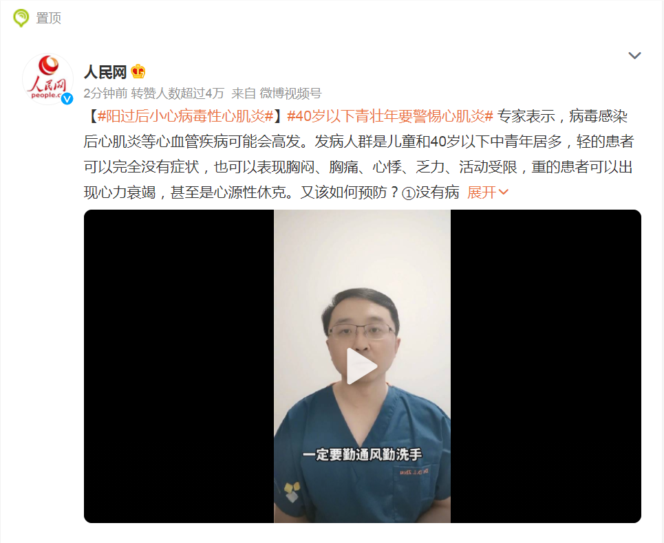 12月25日,#40岁以下青壮年要警惕心肌炎#冲上新浪微博热搜第一。到底是怎么回事?