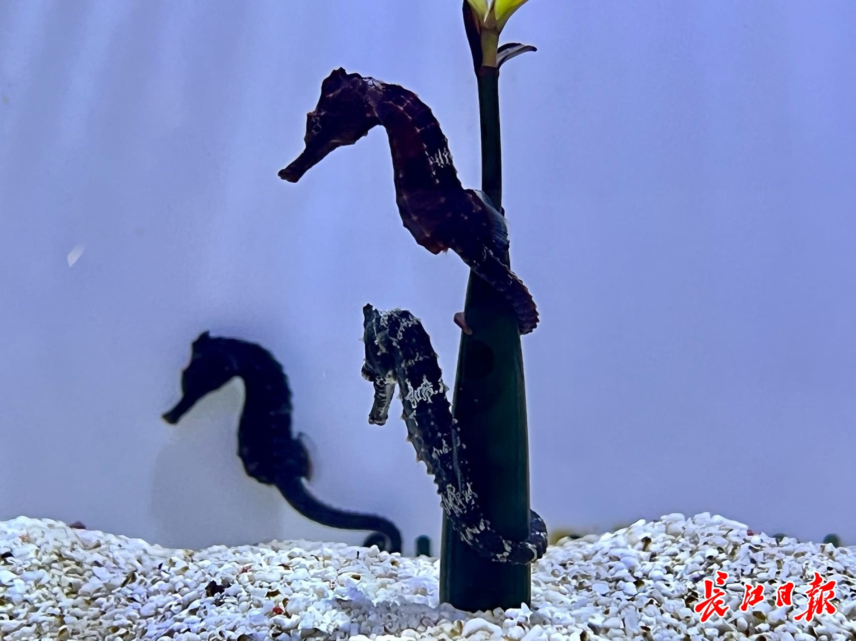 东湖海洋世界新引进“线纹海马”,据了解,海马性情懒惰,常以卷曲的尾部缠附于海藻的茎枝之上,有时也互相攀附挂扣,随波逐流。市民游客可在园区二楼的“繁育实验室”内近距离观察这群可爱的海洋生物。