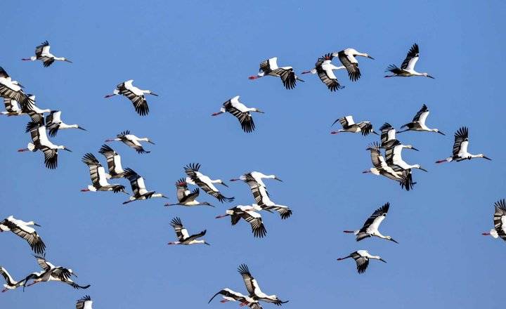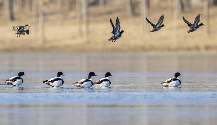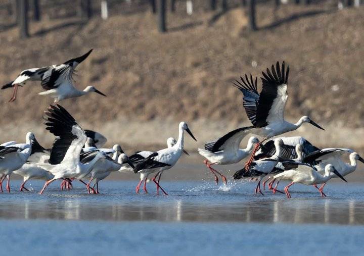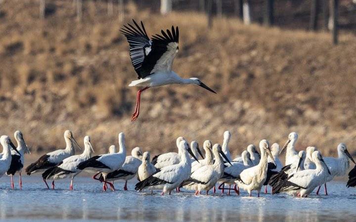 近年来,郯城县加大对沂河生态的修复、保护力度,河水变清鱼草丰美,吸引了东方白鹳、翘鼻麻鸭等珍稀候鸟前来越冬。