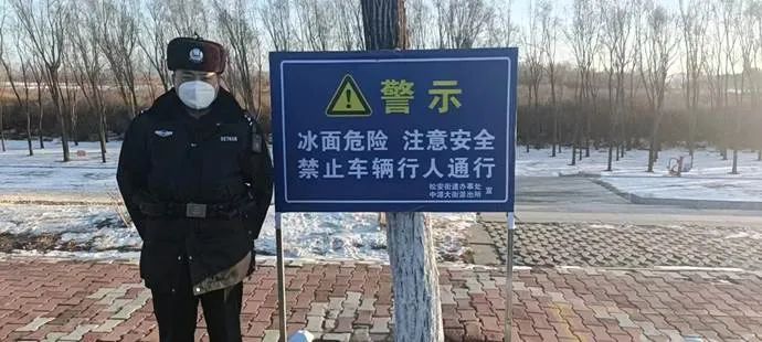 松北分局联合各街镇提前在沿江一线、及景区周边安装设置警示标牌,提醒广大市民游客不要在冰面上行走、玩耍。还联合区城管执法局、交警松北大队等部门单位,对沿江车辆下江道口进行排查、封堵,严防车辆涉险过江。为有效增强游客的安全防范意识,松北分局执勤警力采取悬挂条幅、发放宣传单、提示提醒等方式,进行安全宣传,严防游客拥挤踩踏、摔倒摔伤等事故发生。