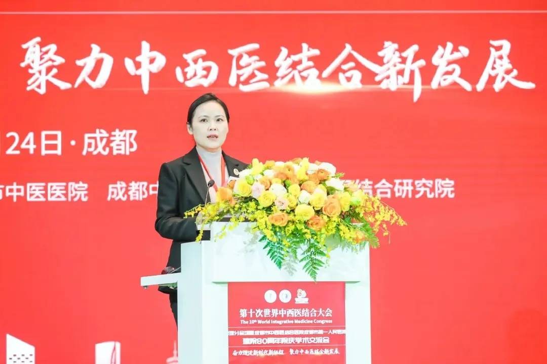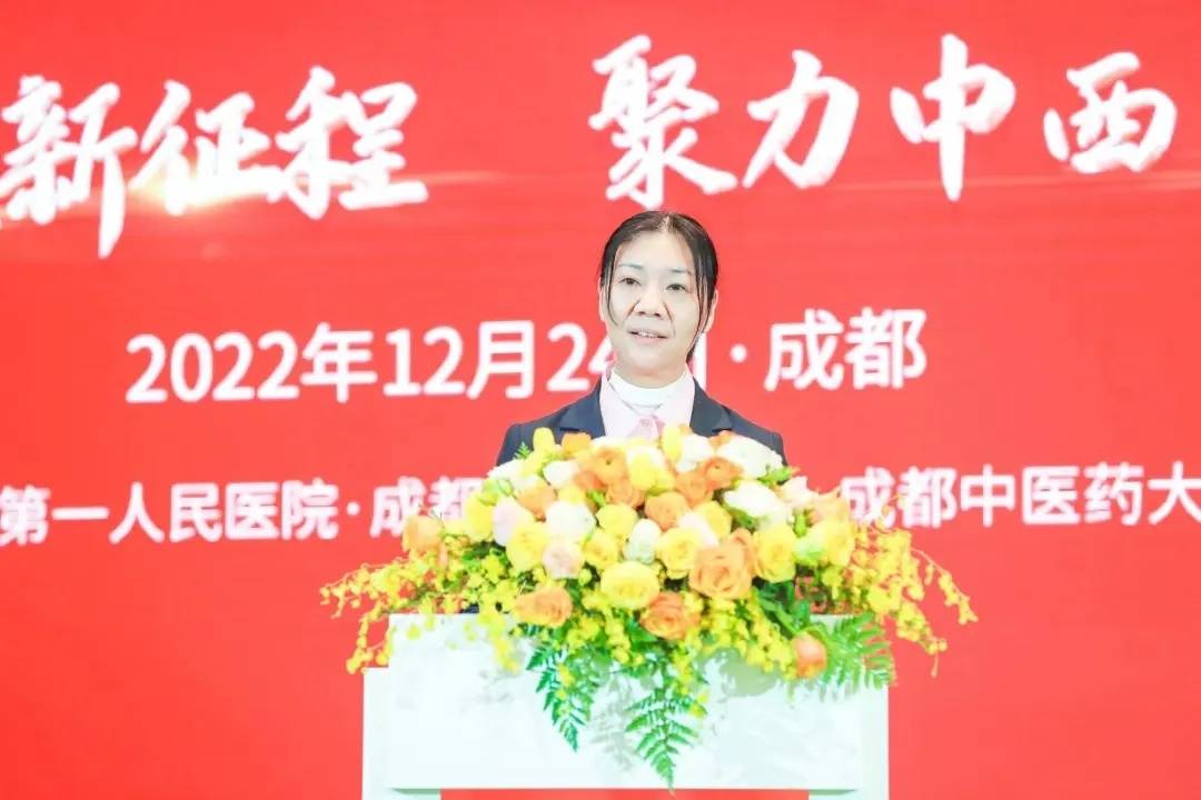 成都市中西医结合医院党委书记、院长陈泽君就医院发展历程与成就以及未来发展蓝图进行了详细介绍。她表示,医院将做到四个“始终坚持”,全面推进高质量发展,发挥院士领航的中西医结合研究院平台作用,构建中医药科技研发中心、健康促进中心、文创中心,搭建数据集成平台和科技成果转化平台,建设中医药人才培养基地。